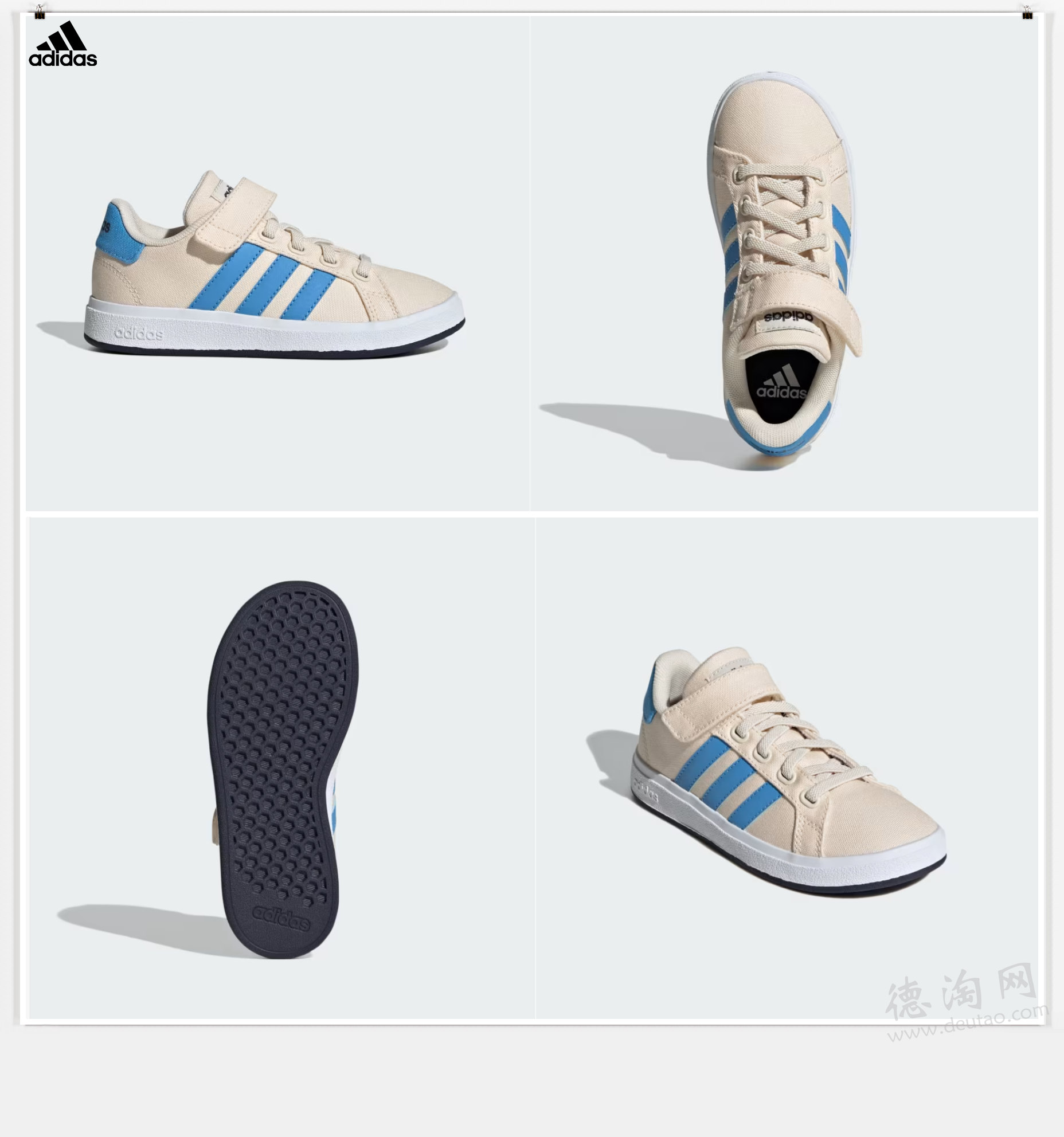 ★ 【Adidas Grand Court 2.0中筒运动鞋大童款 折后仅19欧!】 最大码到40!真的白菜价!设计灵感源自于70年代经典网球鞋型,以简约摩登的设计重塑。采用帆布鞋面和纹理感皮革装饰面,鞋侧饰有三条线标志,彰显品牌辨识度,让整体鞋款质感大幅提升。EVA大底提供极致舒适感,适合各种运动和休闲出街。
