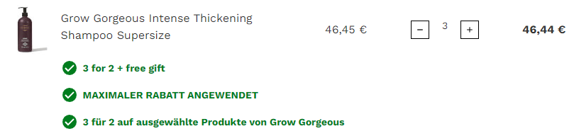 ❤️【Grow Gorgeous 强韧生发洗发系列 独家全场6折优惠码仅10欧!740ml大瓶更划算!仅27欧!全场不限购物金额免邮!】 最畅销的强效系列,让细软、稀疏的头发充分发挥潜力!生物素刺激发根并为其补充能量,令秀发更健康;烟酰胺可减少水分流失并滋润头皮,支持头皮的天然保护屏障作用;咖啡因具有刺激作用,可激活发根;大米蛋白令秀发更加顺滑亮泽,明显增加发量;氨基酸(角蛋白的重要组成部分)可令秀发更显健康;透明质酸有助于滋润头发,使秀发如丝般柔顺!