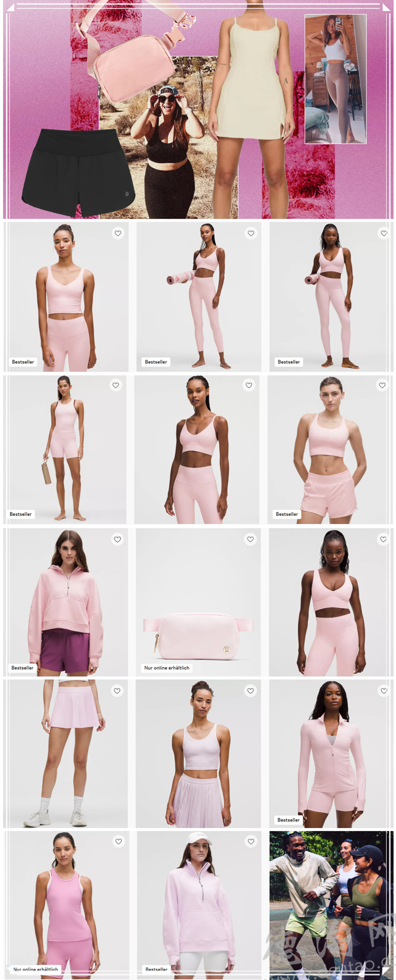 作为运动行业的高端服饰品牌,为瑜伽、跑步、训练、休闲等场合,提供具有高科技元素的热汗装备。折扣专区大量热门款式被重新上架,而且尺码/颜色更新快,促销力度大。在ins、Tiktok等社媒上,“leggings”仍是Lululemon为最热门类别;Oversized与日常运动混搭风热度也在持续上升!