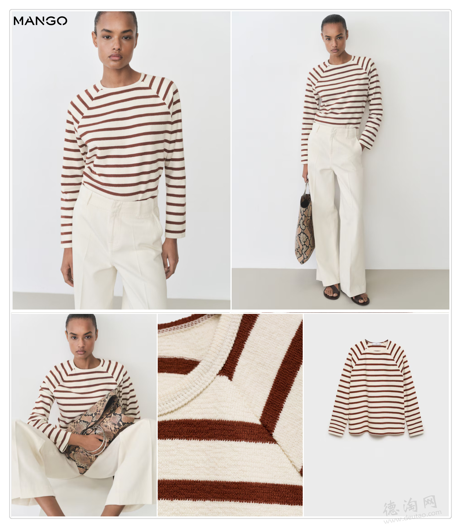 • 【Mango 高领条纹毛衣 折后仅15欧,原价22欧!】 驼色加上黑色条纹,温柔减龄感拉满很自然的感觉,也是很出彩的配色,出门不易撞款!高领本身就在早春秋冬深受大家喜爱,不仅防风保暖,还能在层层叠叠的外套包裹中,露出边角时髦又好看,叠穿出来的效果还很气质。