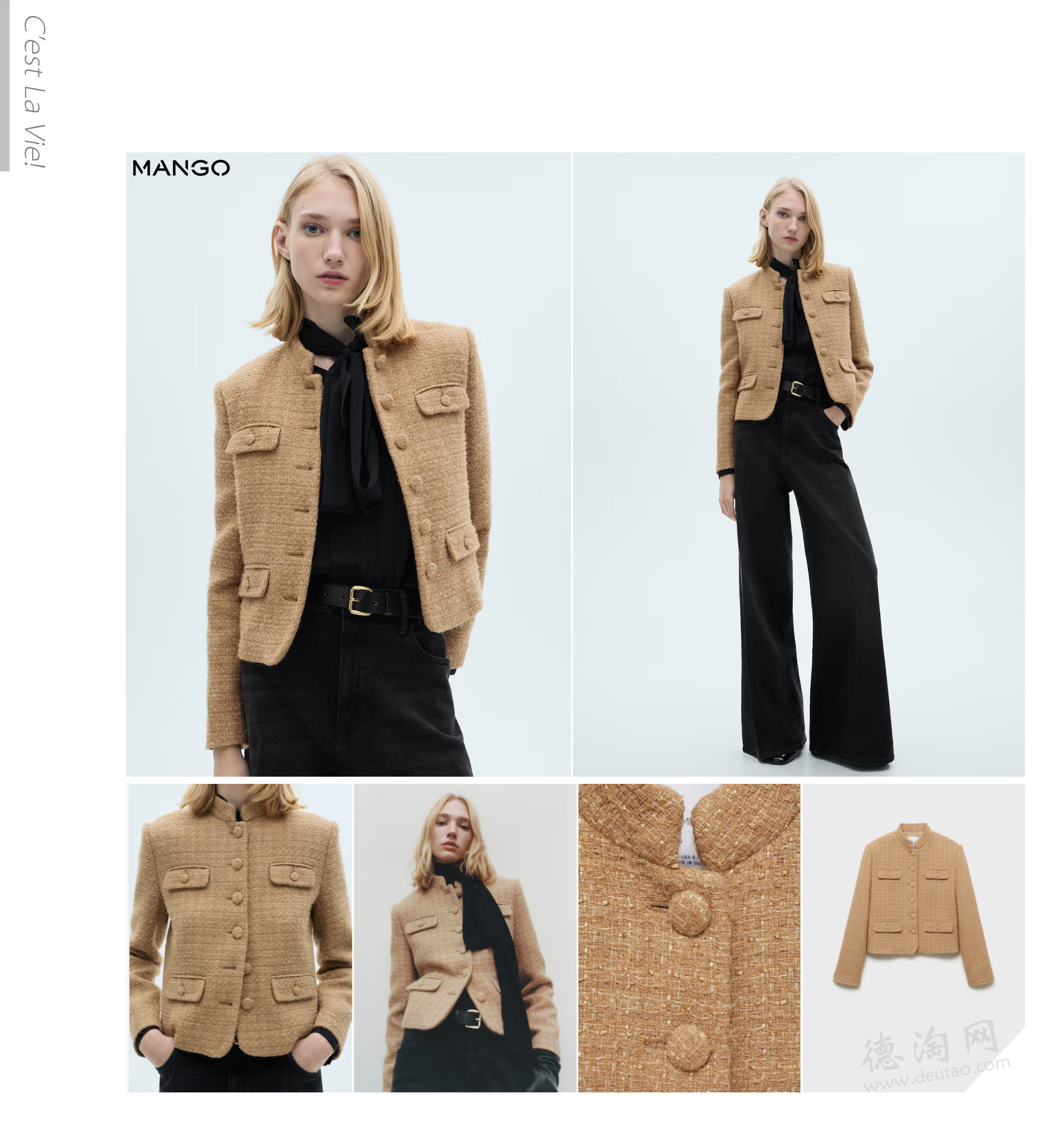 【用快时尚穿出满满高级感!Mango服饰 官网活动,全场低至4折优惠!39欧收粗花呢小香风夹克!不过时的高级感上身就迷人!】Mango 以时尚、摩登、大都会感的服装设计,赢得全球女孩们的青睐。同时,Mango也迅速传递西班牙时装的形象语言,让喜爱时髦、钟爱流行的时尚女性,有全新、与众不同的衣橱选择。这次折扣区真的美不胜收,全场低至4折,来速抢心头好!