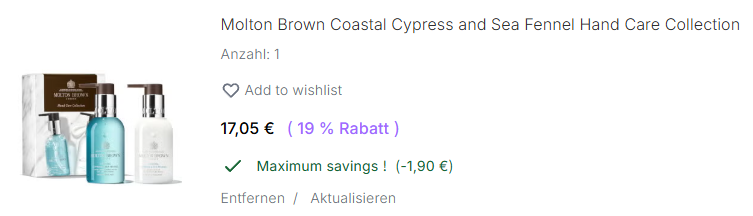 • 独家全场8折+免邮优惠码:亲测有效!注意在AKTIONSCODE下面输入! 正价和特价商品都能用!Trudon/Carriere Frere无效!其他美妆和护肤品牌都有效!7月31日截止!