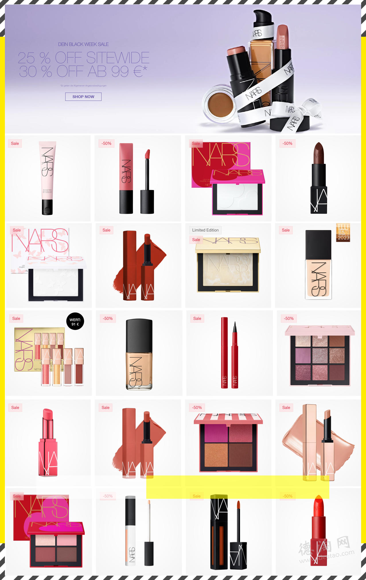 ❤ 每件单品都是化妆包里的天花板级存在!NARS 官网黑五全场低至5折优惠+🎁送价值41欧的正装妆前乳!超方瓶粉底液仅28欧!