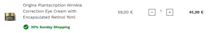 ★ 限时折上7折优惠码:30origins 亲测有效!满85欧还送正装咖啡因面霜50ml!