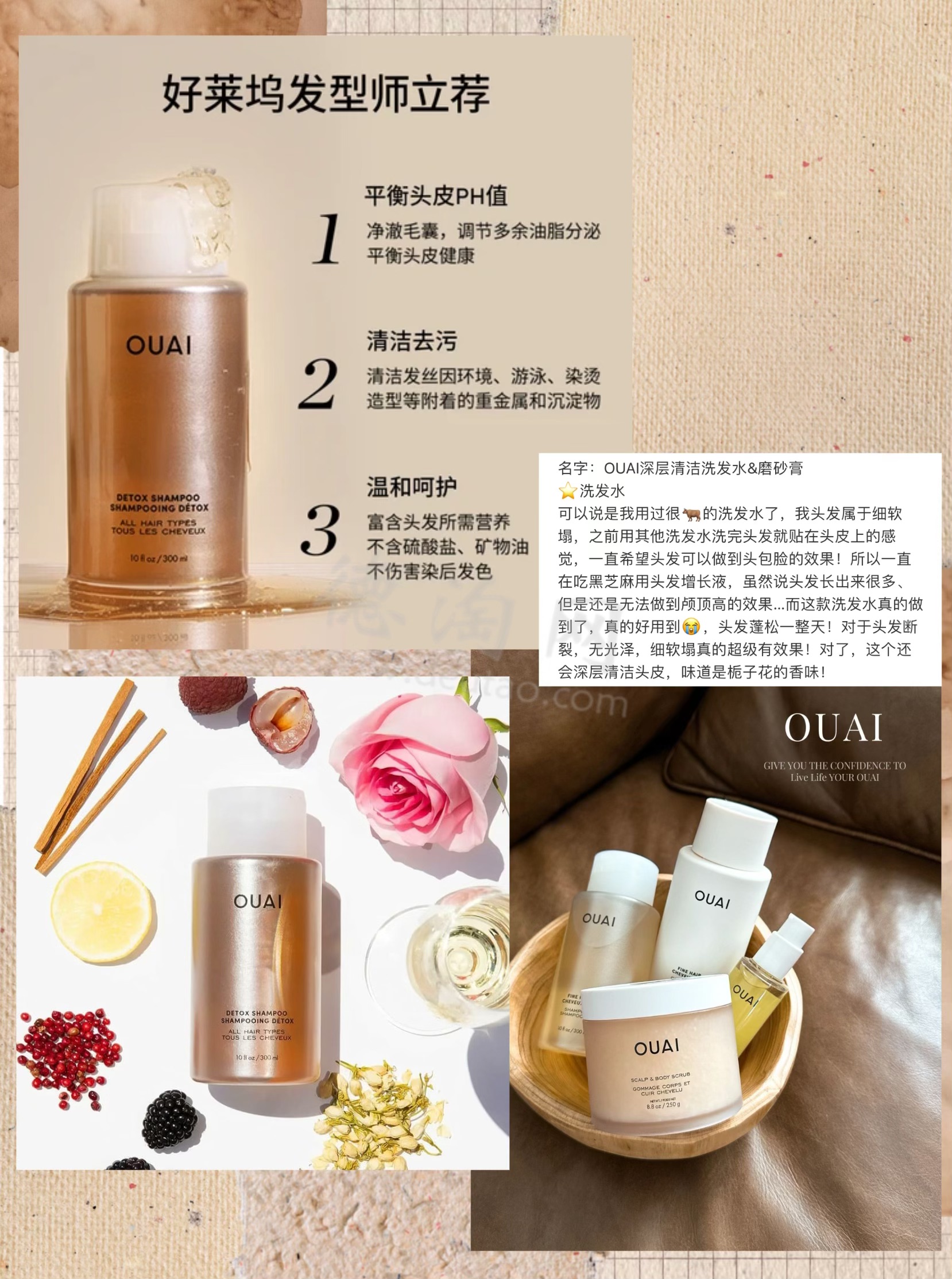 🌟不管你是干燥受损发质、油性发质,还是中性发质,这款洗发水都能完美适配。洗头发的时候,还能享受它散发出的迷人香气,玫瑰、佛手柑、荔枝和麝香交织在一起,仿佛置身于高级水疗中心,给你带来奢华的洗护体验。用了 OUAI 大容量排毒洗发水,跟头发问题说拜拜,轻松拥有柔顺亮泽秀发!