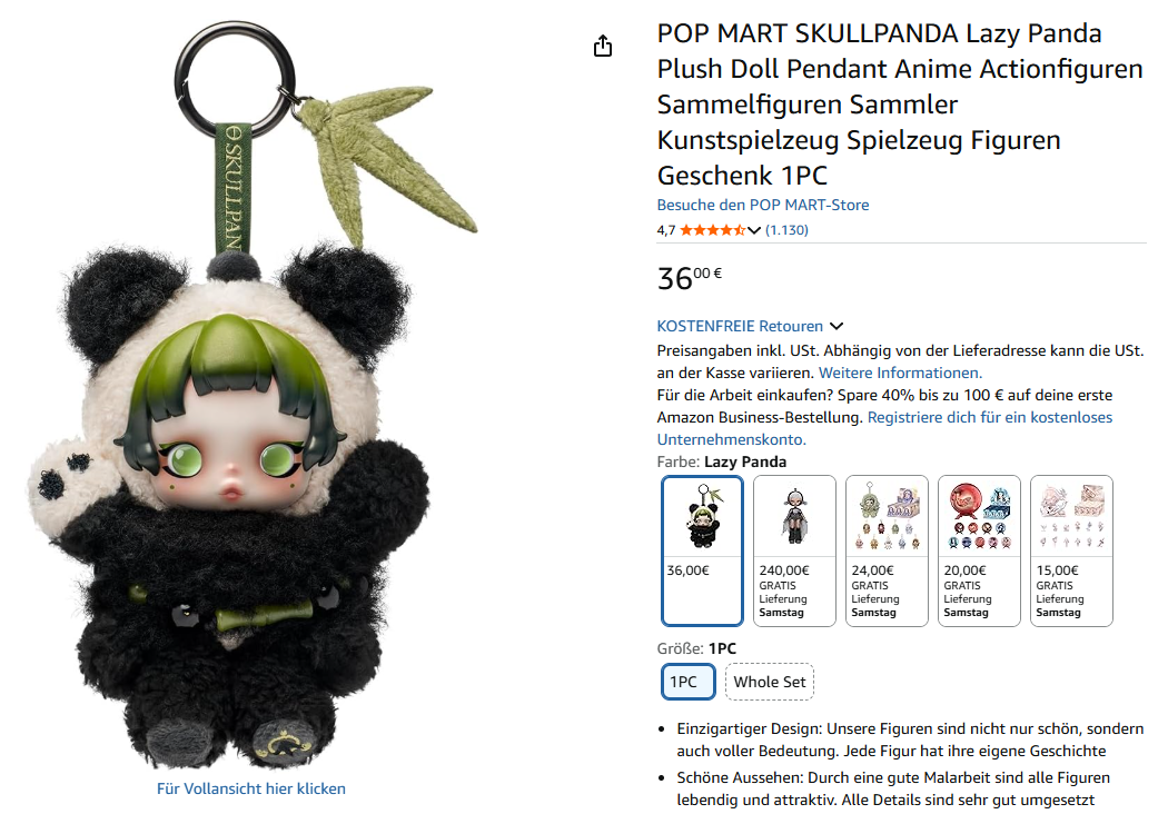 【时下最火热的潮玩文化~ POP MART 泡泡玛特玩偶手办 美乐蒂玉桂狗还有火影!德国也能买到各路大IP联名了!】签约合作了众多国内外知名潮流品牌及设计师,设计制作潮流玩具、二次元周边、BJD娃娃、IP衍生品等,为经典IP形象打造时下年轻消费者喜爱的潮流产品,各式盲盒惊喜连连,每个系列的设计都深得精髓!
