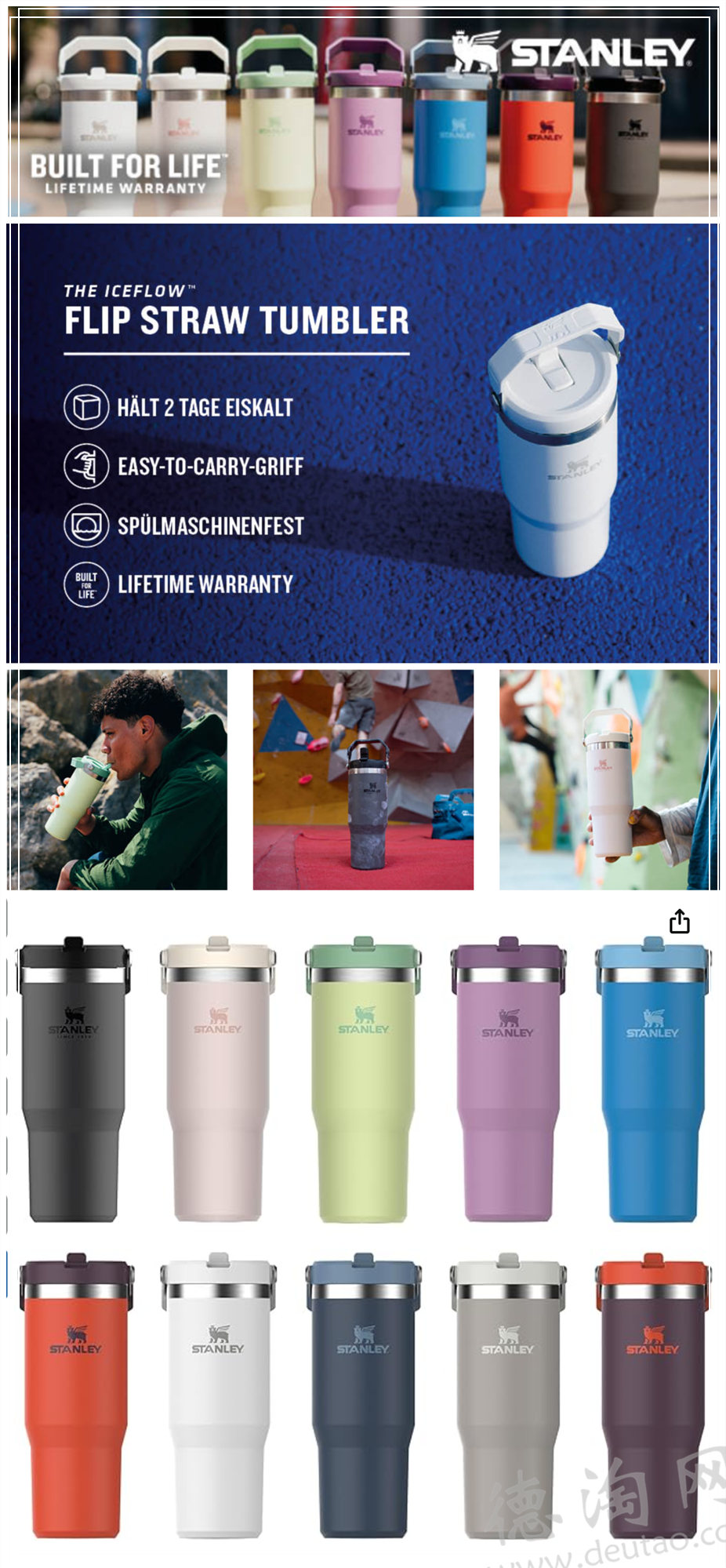 【百年网红保温杯品牌Stanley🥤 官网全场7折优惠!蜜桃粉Quencher史低价仅35欧,和Lululemon和Alo都配绝了!】Stanley有着100年的悠久历史,是世界第一大真空保温杯品牌。卓越的保温性能,100%防漏,而且材质安全环保。敢于提出25年质保的承诺,可见其品质是多么过硬。这几年保温杯在设计上迎合女性的喜好,迅速推出多款颜色,并从传统的量产模式走到限量产品路线,从联名到饥饿行销都让消费者趋之若鹜,更有不少人会买下不同颜色,当作时尚单品搭配!