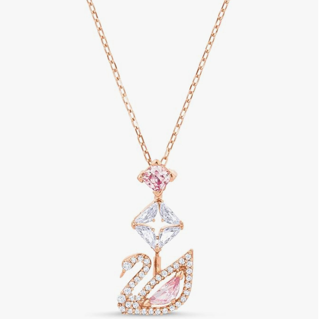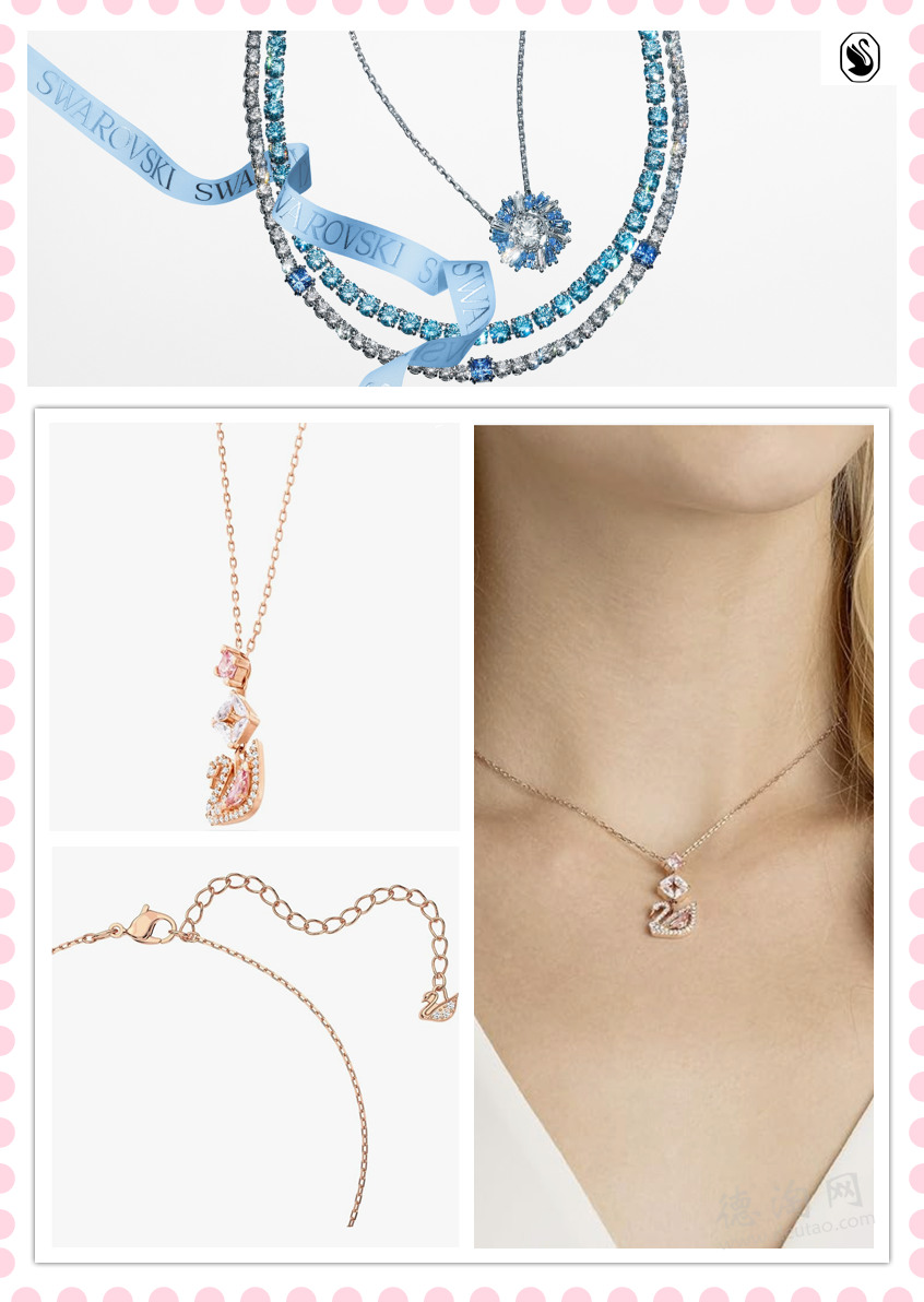 ★【Swarovski 玫瑰金粉水晶天鹅项链 折上折仅66欧!原价119欧!】 谁能拒绝粉天鹅!加上浪漫闪亮的玫瑰金吊坠,足以让所有人目光向我看齐!施华洛世奇的传奇天鹅由千禧粉红色全切面水晶主体和透明密镶水晶组成。除可为日夜装扮增添色彩和闪亮点缀,更可与同款的镀白金色单品叠搭佩戴,使造型更引人注目。
