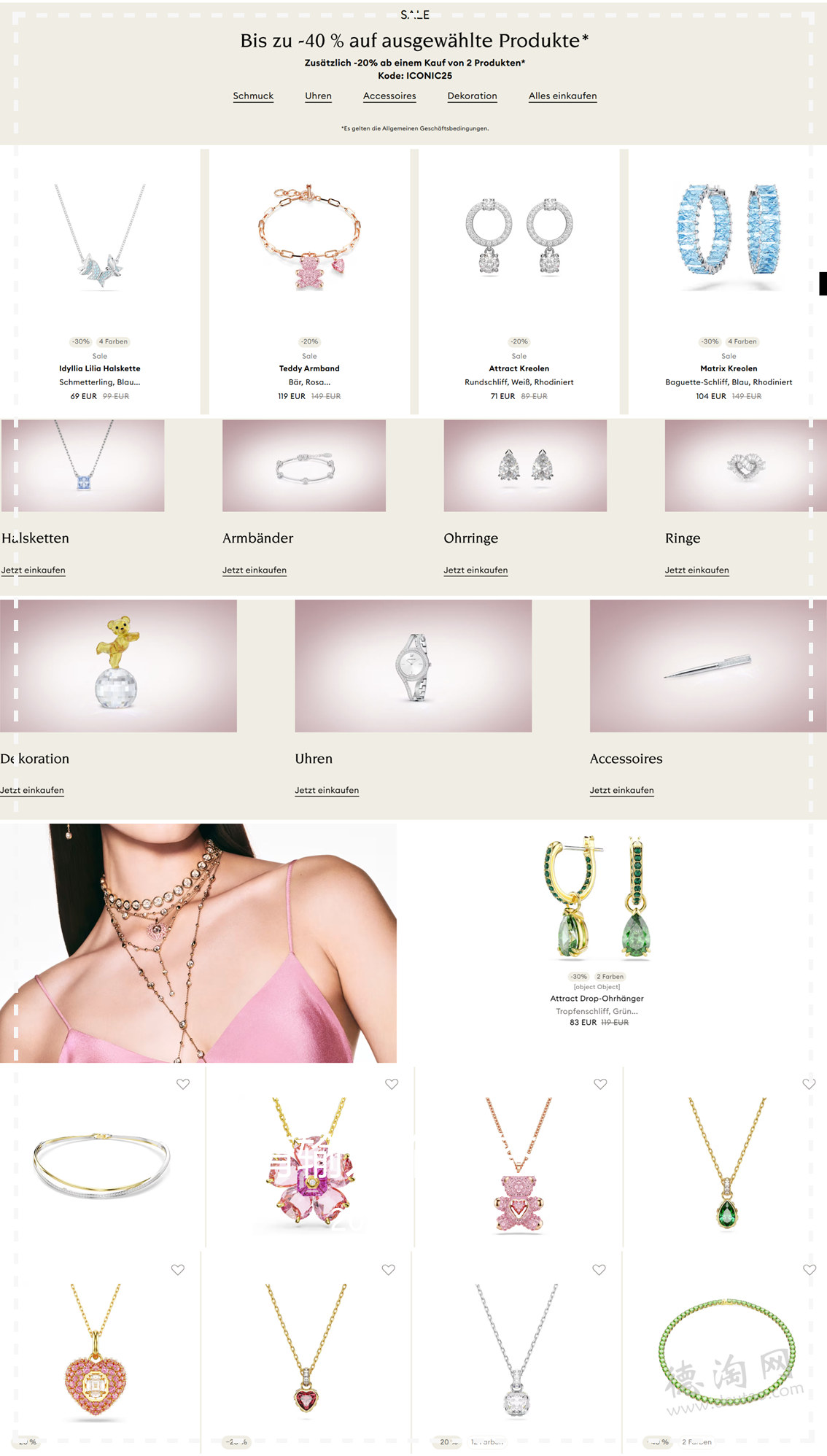 【平价也能blingbling!Swarovski 施华洛世奇官网 全场低至5折!圆润无暇顶级水晶珍珠项链仅69欧!Iconic新款天鹅套装一次性买全!】Swarovski更换设计后风格转向大气华丽感,水晶那种美丽火光及切割面设计,放大、发挥到极致,从耳环、项链、手链到戒指…等款式,更具大气且俐落的造型感搭配!折扣力度超大,场内精心甄选迷人的仿水晶首饰、时尚配饰、家居摆件饰品、轻奢手表以及予以浓浓情意的礼品!