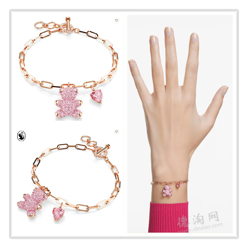 ★【Swarovski Teddy粉色熊熊珍珠手链 折上折仅95欧!原价149欧!】 粉嫩配色+可爱爆棚的小熊造型,这款吊坠极富设计趣味,呈现了一只戴着墨镜的3D泰迪熊。小熊吊坠采用创新“双重闪跃配件”技术,通过低温陶瓷镶嵌技术,密镶施华洛世奇黑色仿水晶,搭配精致的金属链佩戴。有了珍珠点缀让你戴上秒变温柔小姐姐!