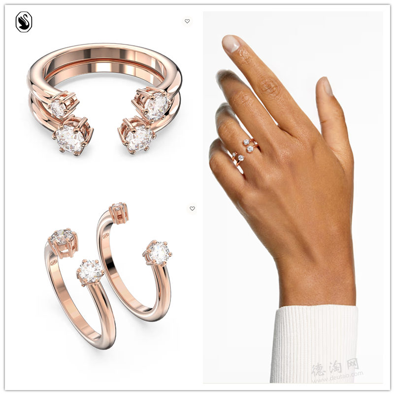 ★【Swarovski Constella双戒套装 折上折仅66欧!原价139欧!】 这款由两枚Constella戒指组成的套装。戒指上镶嵌着Swarovski璀璨锆石,在玫瑰金色镀层的映衬下闪闪发光,浪漫氛围瞬间拉满可单独佩戴,也可以叠戴,甚至分别戴在不同手指,打造专属你的星空造型。谁说浪漫只属于夜晚?你也可以随身携带。
