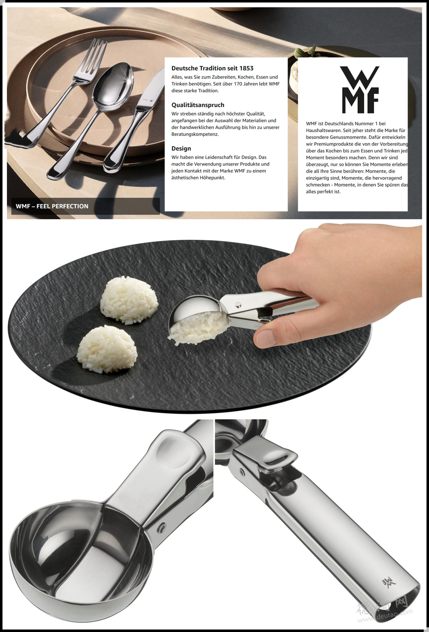 【家喻户晓的高端厨具品牌WMF 全场热卖低至3折起!便捷榨汁机升级款5折,3只平底锅仅85欧!】世界第一台咖啡机的发明者,在德国餐具及厨具的市场处于领袖地位,斩获欧洲设计大奖、金罗盘奖、iF设计奖等众多世界级奖项,拥有多项专利技术。场内提供高品质备餐、烹饪、用餐、品饮及厨房小家电产品,每一款都兼顾实用与设计感,颜值在线,耐用度拉满。让你的每一餐都充满安心和爱!