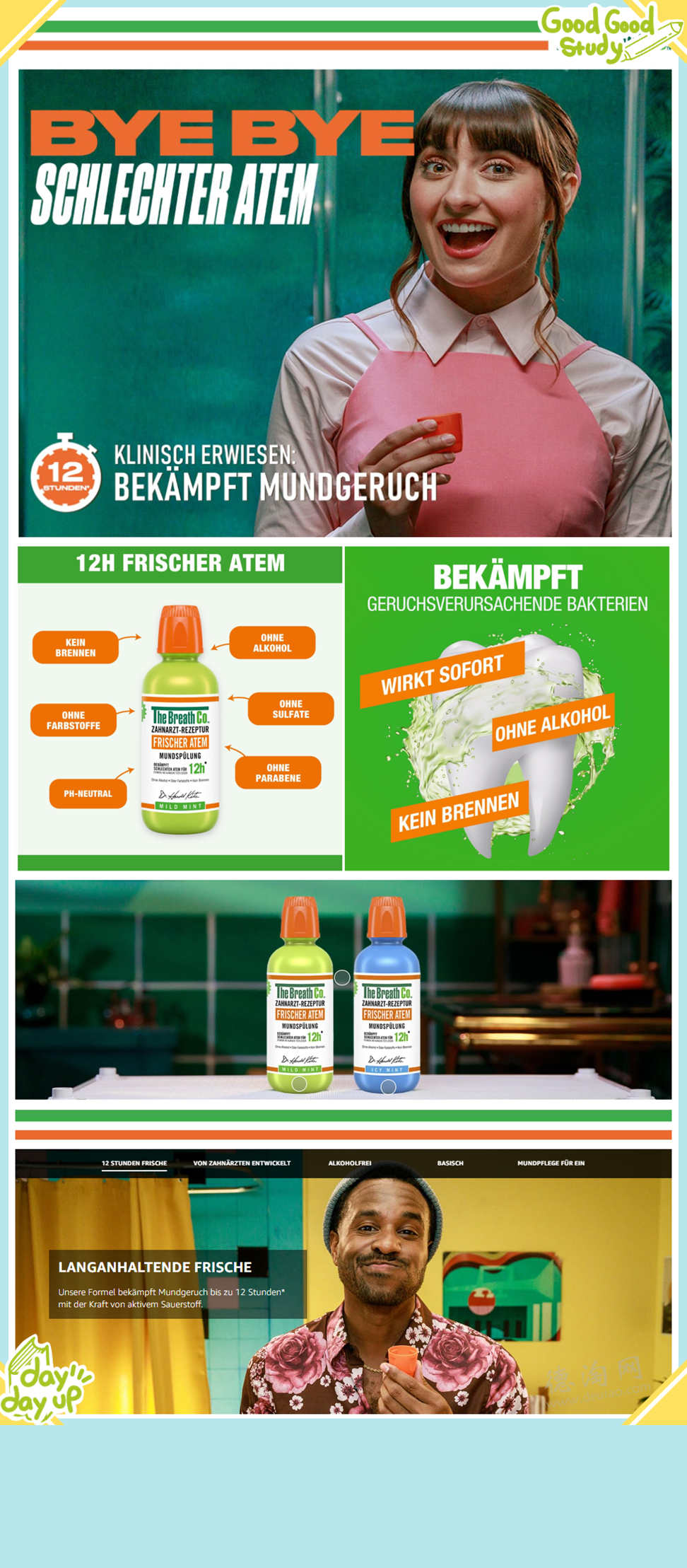 【打造整天自信呼吸!🌱The Breath Co. 绿色清新漱口水500ml 圣诞特价仅6欧!】Katz博士于1993年创造了The Breath Co.配方,帮助自己的女儿解决口臭问题。目前是美国增长最快的漱口水品牌,这个牌子专门针对口腔异味问题,对症下药,不刺激又超持久!有效维持长达12小时的清新口气,独特活性氧配方,抗菌同时中和口腔异味。全面抗菌护理,临床验证可有效清洁整个口腔,包括牙缝、牙龈及舌面,去除刷牙后残留的几乎所有细菌,阻止口臭再发生。碱性PH值帮助抵御日常酸性侵袭,保护牙釉质与牙龈健康。相比普通漱口水,更温和同时强化口腔防护!